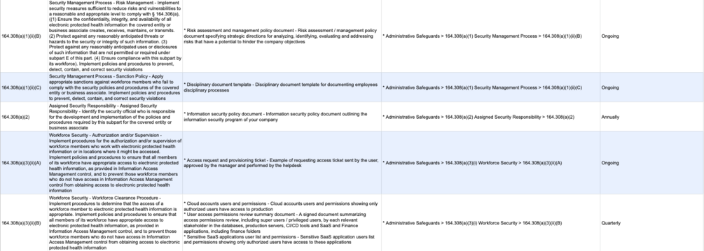 HIPAA Expected Evidence Spreadsheet